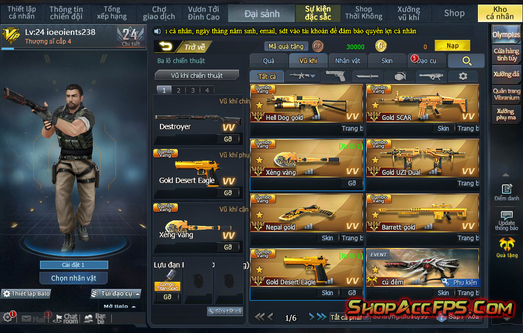 Bảo Đảm Acc Như Hình 100% ( Trừ Mũ Giáp , Các Đồ Đạo Cụ - Vũ Khí Ngày )